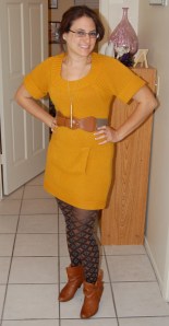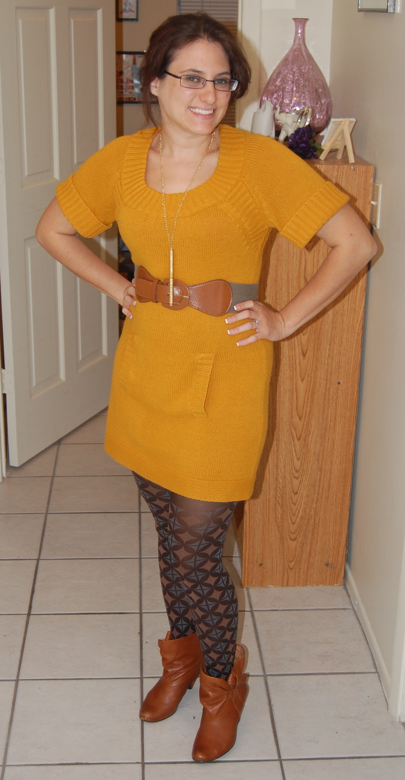 Dress: NY&Co., Belt: Target, Tights: gift, Shoes: hand-me-down.