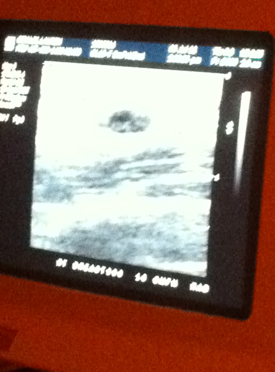 My mammogram went smoothly, if not uncomfortably, and then the ultrasound was cold and wet and weird. I figured my first time having one would be when I was pregnant. I assumed wrong. I took a picture to text Samir, who was waiting for me patiently in the other room.